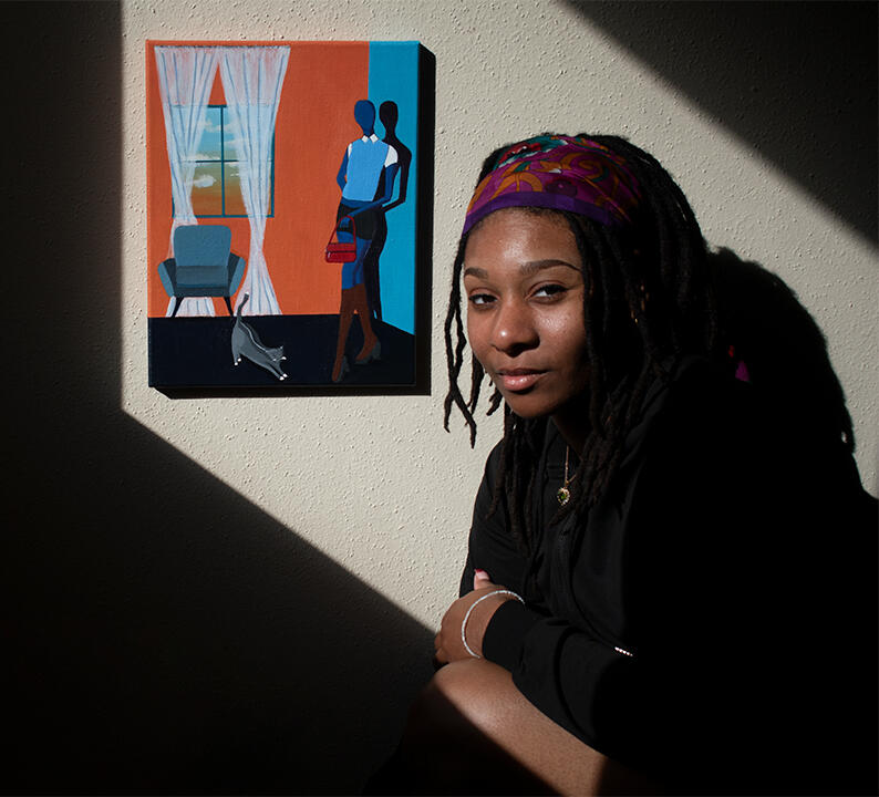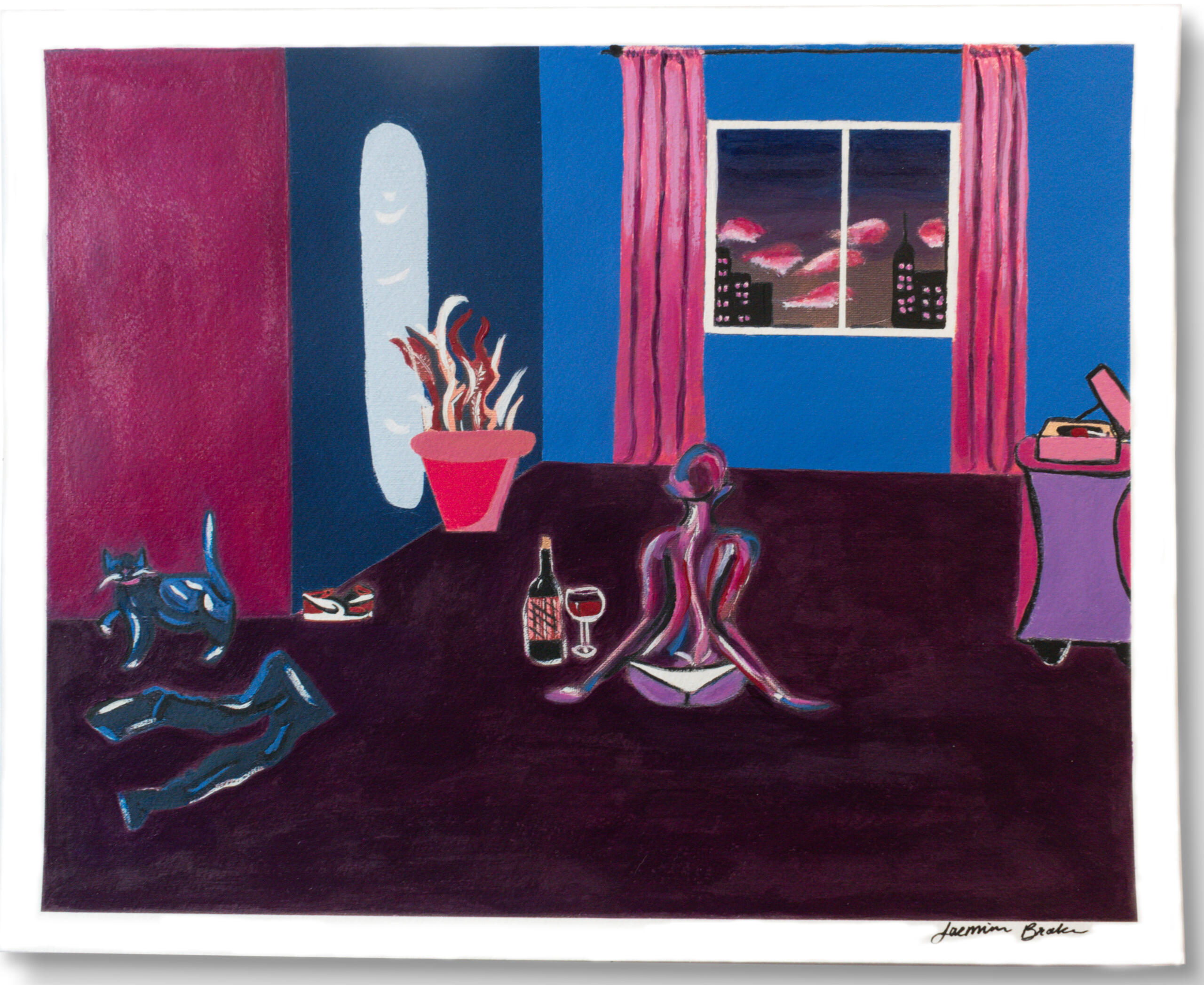 My name is Jasmine Brooks, 29 and I'm a multi-disciplinary artist originally from Los Angeles, California. Since 2012, Houston has been my home city. My journey as an artist began in 2018, fueled by a desire for self-expression and experimentation with color, objects and the human form, through self-taught techniques.My work consists of subjects of hard-edge geometric and free form shapes, unordinary/unique depictions of people in interior scenery and obscure collages by using acrylic paint, fabric and paper. Using bold colors to create dynamic compositions. Throughout life I’ve embraced the power of not fitting into one identity and being a layered, odd, multi-faceted individual. Appreciating the simple and complex aspects of oneself.I seek to convey themes of acceptance in self-image, freedom through expression, emotions, diversity, beauty, odd and offbeat things and appreciation of aesthetics, material subjects and women. These themes are reflected in my work as I present the embodiment of my individuality, life journey, femininity, style and everyday things